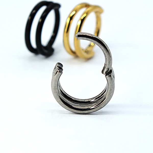 Modernne kahekordse joonmotiiviga titaanist clicker-rõngas, mis lisab kõrvapiercingule minimalistliku, kuid efektse aktsendi.