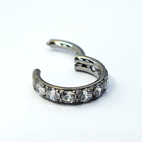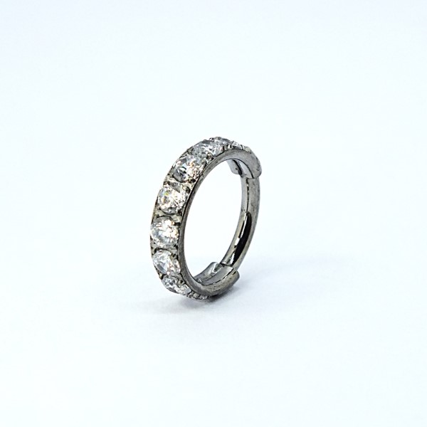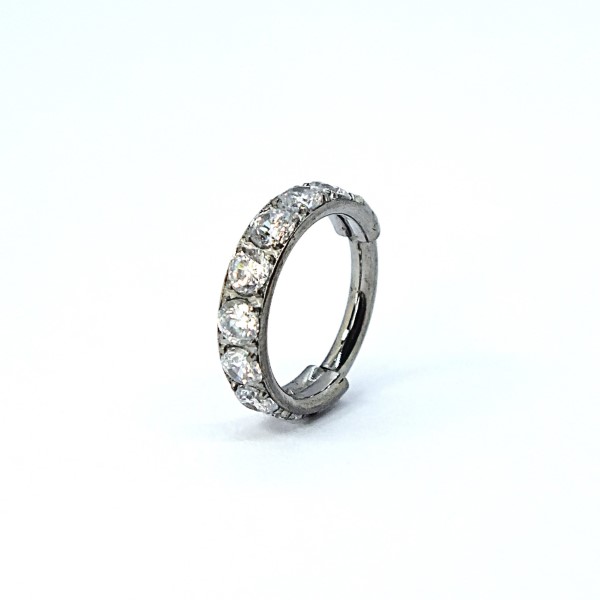 Elegantne ja mugav clicker-rõngas, mis on kaunistatud ühtlases reas sädelevate kivikestega.