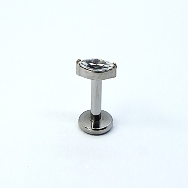 Labret läbipaistva kristalliga. Sobib huulde, ninna ning erinevatesse kõrva-piercingutesse (helix, tragus).